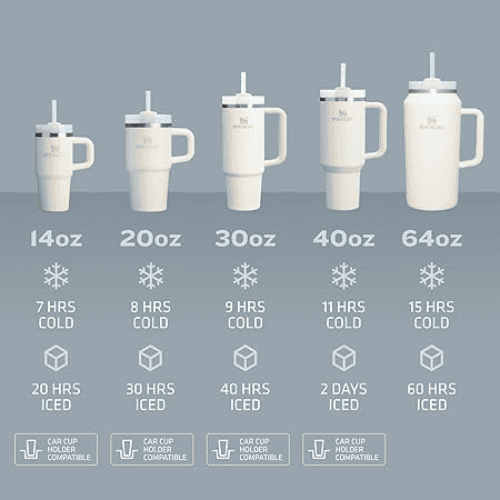 SEEK SOMETHING DIFFERENT THIS SUMMER: Discover our new Summer colors for the Stanley Quencher H2.0 FlowState tumbler. Keeps drinks cold, iced, or hot for hours with double wall vacuum insulation. Narrow base fits most car cup holders.